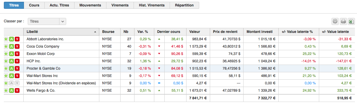 Vous pouvez voir la performance de mes lignes dans les colonnes « plus ou moins values ». Je n’ai rien a cacher.
