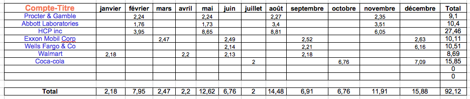 Si en 2015, je n’avais touché que 2,33 € de dividendes (je venais juste de lancer mon compte-titre, alors que j’ai un PEA depuis plusieurs années), en 2016, le montant de mes dividendes s’élevait cette fois à 92,12 €.