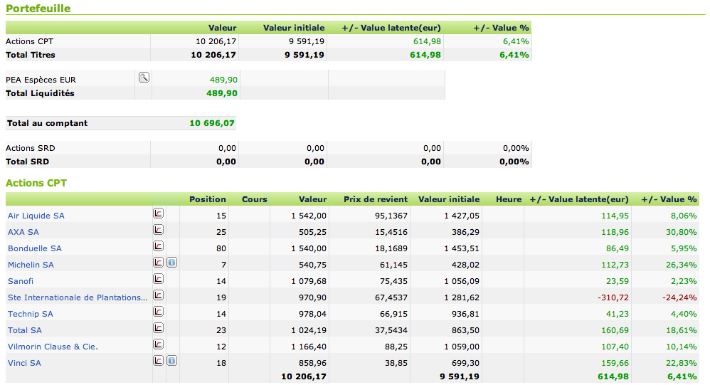 Je virerais axa en priorité, pourquoi pas technip dans la foulée, peut-être integrer danone, qui n’est pas loin de ses plus bas à 52 semaines, arbitrerais les lignes histoire de les equiponderer,puis investissement bete et régulier, en faisant en sorte de maintenir la repartition, ajout d’une nouvelle ligne chaque fois qu’un nouveau « palier » est atteint(+1500?).