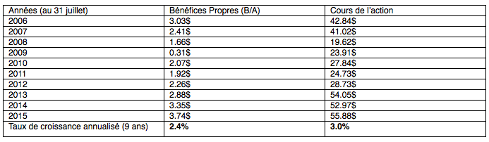 Il est passé de 42.84$ à 55.88$, pour une croissance annualisée de +3.0%.